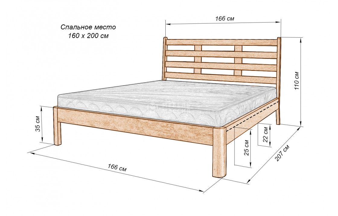 Кровать Морфей имеет минималистичный дизайн: высокое реечное изголовье, отсутствующее изножье и высокие устойчивые ножки. Изделие, которое можно купить по демократичной цене в нашем интернет-магазине, изготовлено из экологически чистого древесного массива и покрыто защитным лаком. Осуществляется доставка на дом по Нижнекамску и Республике Татарстан.| Размер | Цена | |