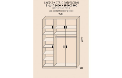 Шкаф трехстворчатый с антресолью Кардинал